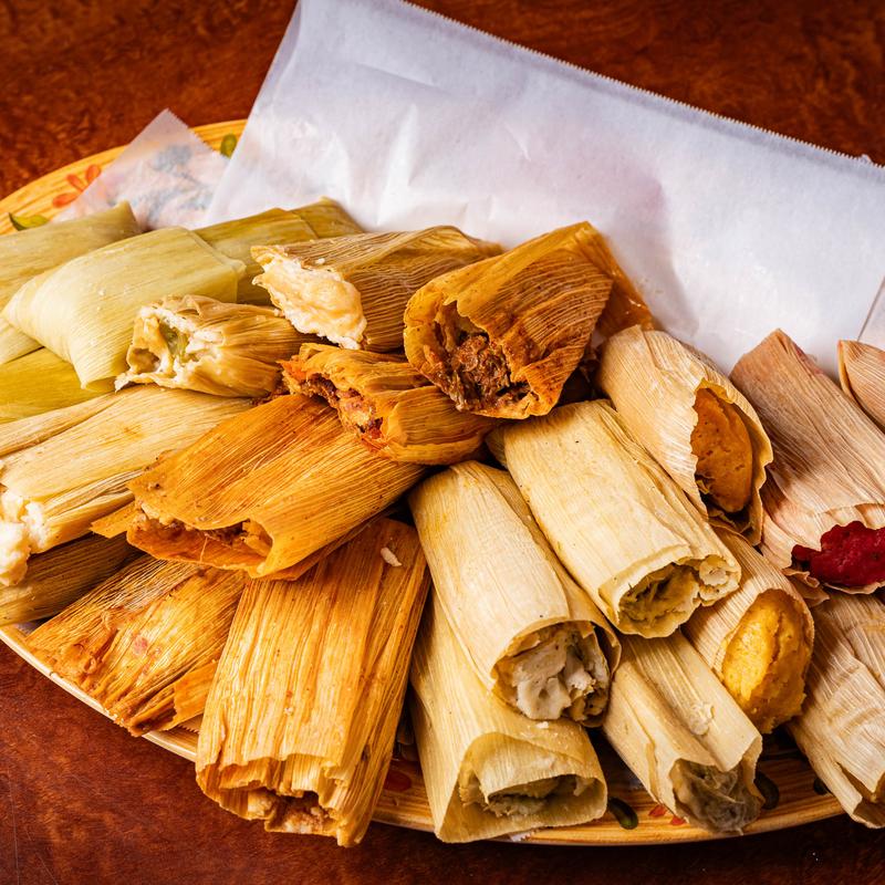 Two tamales of your choice. With a side of rice, beans, and salad. Drink included.