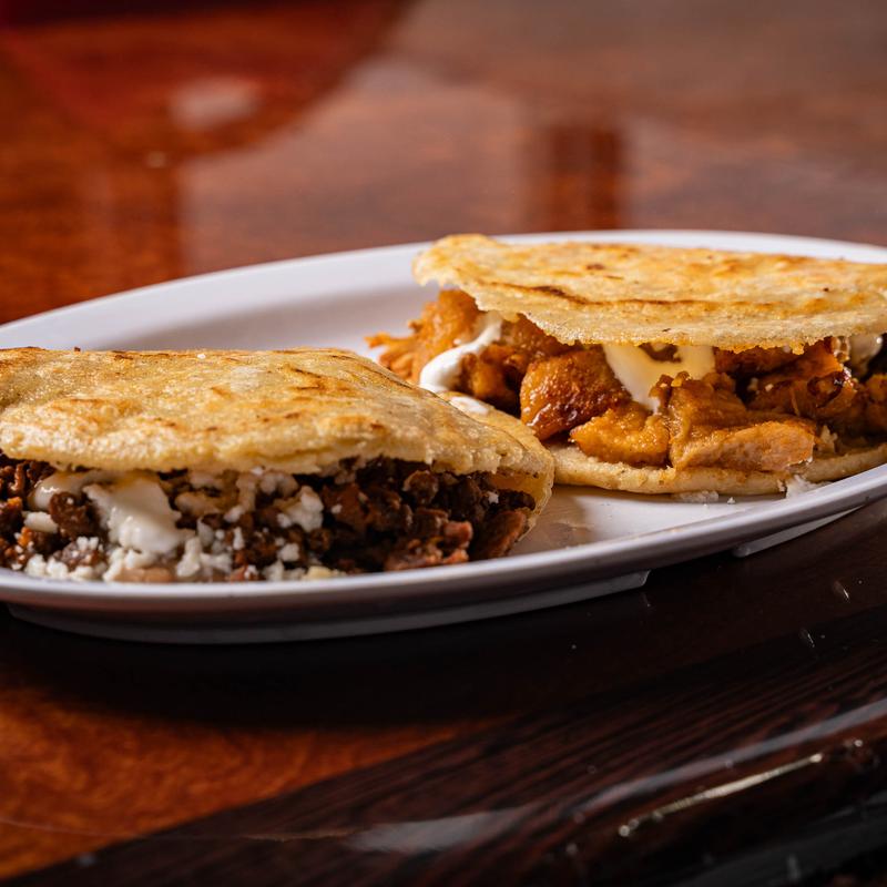 Thick handmade corn tortillas stuffed with your choice of meat, beans, cheese, and sour cream.